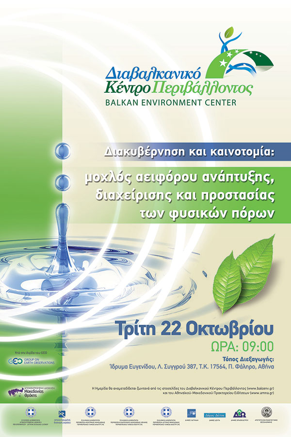 Διεθνής ημερίδα με τίτλο: «Διακυβέρνηση και καινοτομία: μοχλός αειφόρου ανάπτυξης, διαχείρισης και προστασίας των φυσικών πόρων», 22 Οκτωβρίου 2013