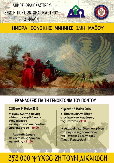 παρουσία σας τις εκδηλώσεις για την επέτειο της Γενοκτονίας του Ποντιακού Ελληνισμού.