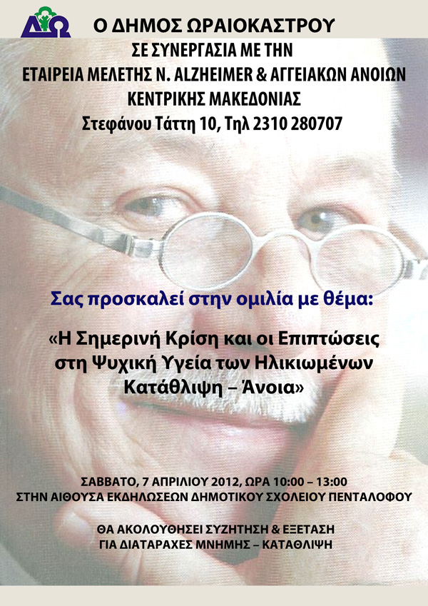 Δείτε την Πρόσκληση σε Ομιλία με θέμα "Η σημερινή κρίση και οι επιπτώσεις στην Ψυχική Υγεία των Ηλικιωμένων Κατάθλιψη – Άνοια".