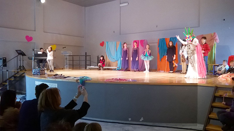 Η σκηνοθέτης Νέλλυ Δελή με χορευτικό από την νεανική θεατρική ομάδα του δήμου και πλαισιωμένη από μικρούς μουσικούς και τραγουδιστές του ωδείου “ΟΡΦΕΑΣ”, καθήλωσε μικρούς και μεγάλους με τον μοναδικό τρόπο της παρουσιαζοντας θεατρομουσικά το βιβλίο.